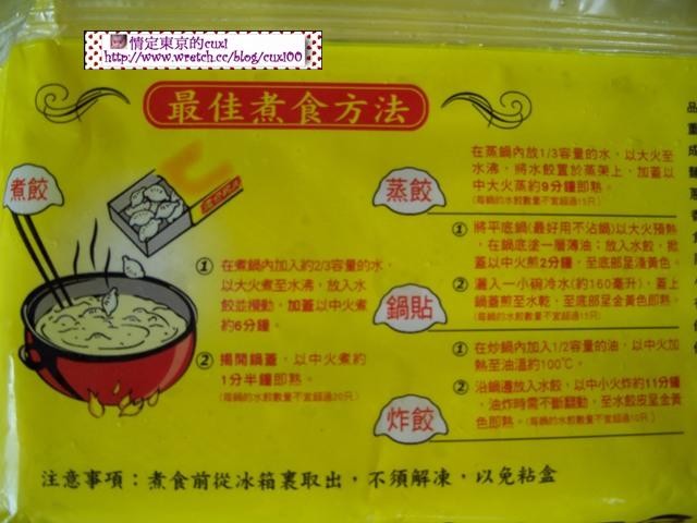 因為水餃皮夠Q,相當耐煮,水滾之後不容易破掉,按照包裝背面所指示之最佳煮食方法進行煮餃,